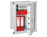 Bezpieczny sejf do domu i gabinetu. Przechowasz w nim cenne dokumenty a także złoto, pieniądze oraz broń palną i amunicję. Obudowa sejfu została wykonana z pojedynczego płaszcza blachy stalowej o grubości 3 mm. Drzwi sejfu dwuścienne posiadają łączną grubość ścianki 60 mm. Po zamknięciu drzwi ryglowane są bolcami o średnicy 25 mm. Budowa sejfu umożliwia wmurowanie go w ścianę. Będzie on wtedy niemożliwy do wyciągnięcia bez użycia ciężkiego sprzętu.