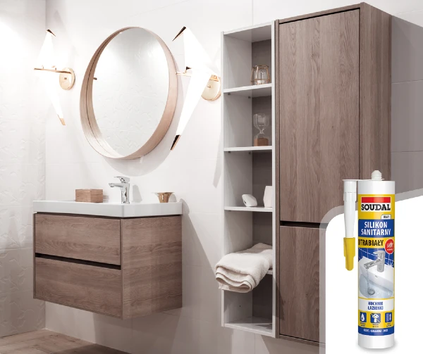 Super biały silikon sanitarny od Soudal nadaje się idealnie do prac w łazienkach, kuchniach i podobnych pomieszczeniach.