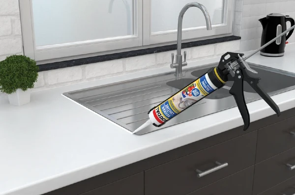 - Używaj extra białego silikonu sanitarnego do fug między umywalką lub zlewozmywakiem, a ścianą.