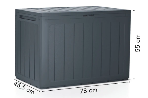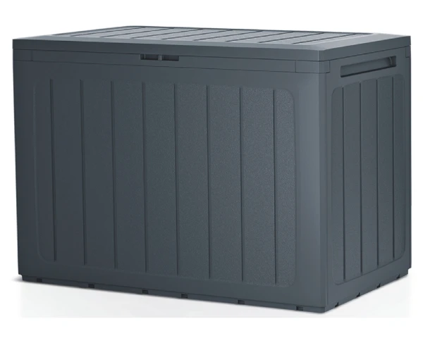 Skrzynia plastikowa na balkon i do ogrodu. Kompaktowy i stylowy schowek idealny na balkon lub taras. Wykonana z trwałego, odpornego na warunki atmosferyczne materiału, zapewnia ochronę przechowywanym przedmiotom przez cały rok. Dzięki eleganckiemu designowi i antracytowemu kolorowi doskonale komponuje się z każdą aranżacją zewnętrzną, oferując praktyczne miejsce do przechowywania.