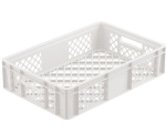 Perforowany pojemnik piekarniczy idealnie sprawdzi się w transporcie i przechowywaniu pieczywa i produktów piekarniczych. Dzięki swobodnemu dostępowi powietrza pieczywo dłużej zachowuje świeżość i przydatność do spożycia. Lekka skrzynka piekarnicza zaopatrzona w wygodne uchwyty. Konstrukcja kosza piekarniczego nadaje się do sztaplowania i gwarantuje wygodę użytkowania. Trwałe tworzywo wysokiej jakości dopuszczone do kontaktu z żywnością. Skrzynka piekarnicza jest odporna na temperatury i przystosowana do mycia ręcznego i pod automatycznymi myjkami. Ta zaleta pozwala zachować niezwykle istotną w przypadku produktów piekarniczych czystość i higienę.
