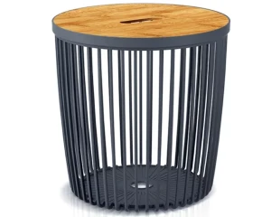 Stolik okrągły antracytowy o pojemności 25 litrów Clubo z elastycznego tworzywa. W zestawie z praktyczną, drewnianą pokrywką to kombinacja eleganckiego designu i klasycznego, miejskiego fasonu.