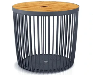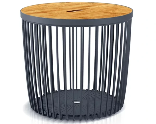 Stolik antracytowy średni o pojemności 50 litrów Clubo z elastycznego tworzywa. W zestawie z praktyczną, drewnianą pokrywką to kombinacja eleganckiego designu i klasycznego, miejskiego fasonu.