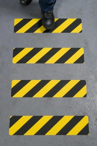 Taśma antypoślizgowa, ostrzegawcza, czarno-żółta - przykucie uwagi i informacja o zagrożeniu