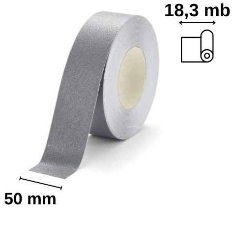 Charakterystyka taśmy antypoślizgowej koloru szarego, o szerokości 50 milimetrów uwzględnia również: