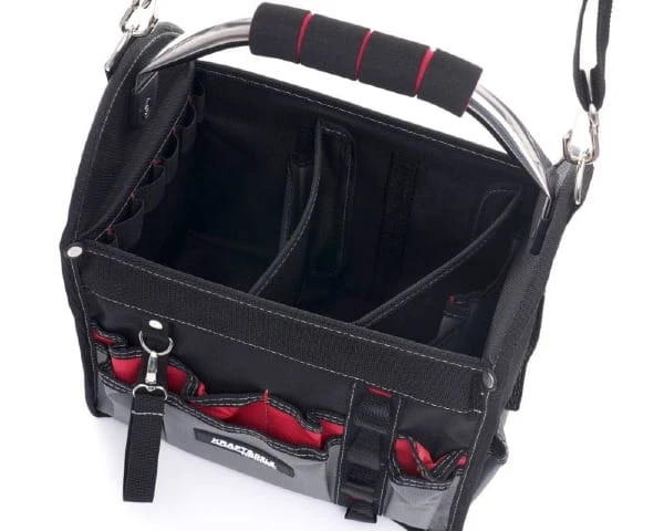 Torba na narzędzia, monterska otwarta marki Kraft&Dele to idealny organizer narzędziowy dla wszystkich monterów (elektryków, hydraulików, glazurników itp. ) Sztywne dno pokryte kompozytowym tworzywem zapewnia trwałość, a wiele kieszeni porządek oraz szybki dostęp do potrzebnych narzędzi.