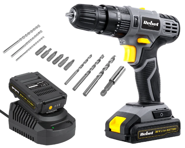 Wiertarko-wkrętarka udarowa akumulatorowa 20V 2A + akcesoria