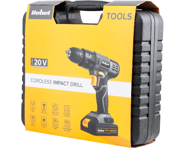 Udarowa wiertarko-wkrętarka z serii Rebel Tools to elektronarzędzie, które obowiązkowo powinno znaleźć się na wyposażeniu Twojego domowego warsztatu.