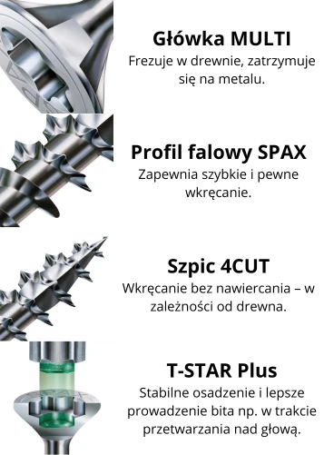 - szybkie i łatwe wkręcanie bez użycia dużej siły (dłuższe działanie wkrętarki akumulatorowej)