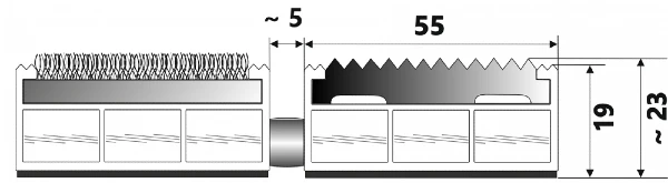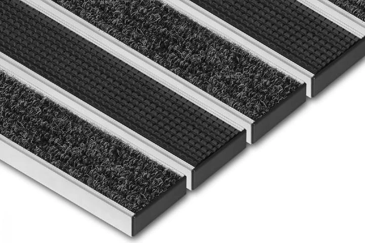 Wycieraczka z szerokimi gumowymi wkładami czyszczącym (guma zębata, ryflowana) i szerokimi wkładami osuszającymi osadzonymi w profilach aluminiowych. Połączenie obydwu elementów umożliwia czyszczenie obuwia z błota, śniegu , a także osuszanie z wilgoci.