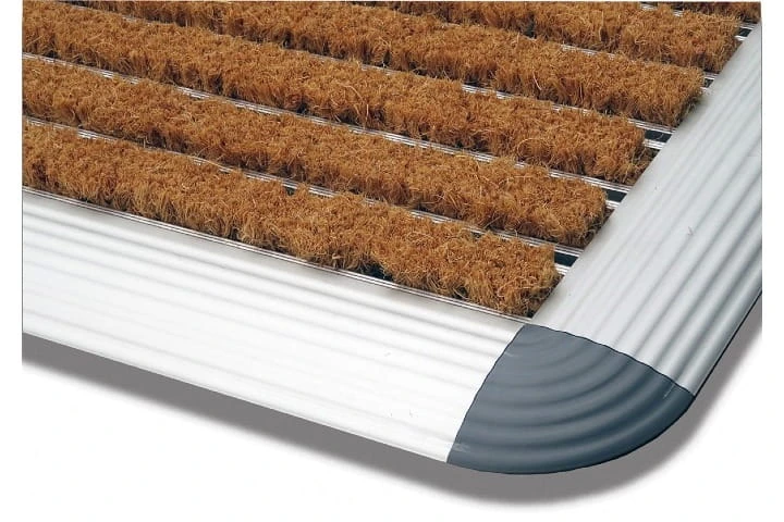 Elementami czyszczącymi są wkłady z naturalnego włókna kokosowego w aluminiowych profilach nośnych. Spód wycieraczki zabezpiecza posadzkę przed porysowaniem.