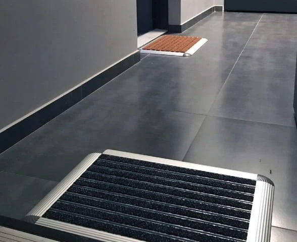 W wycieraczce profile aluminiowe wraz z wkładami czyszczącymi zamontowane są na stałe w rampie najazdowej anodowanej. Pomiędzy profilami tworzymy stały dystans o długości 5 mm, dzięki czemu woda przepływa swobodnie pod wycieraczką.