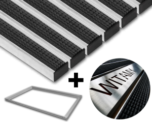 Wycieraczki zabezpieczają powierzchnię przed poślizgiem, odporność profili aluminiowych wynosi 350 kg/cm². Zakres temperatur stosowania: od -40°C do+70°C. Oczywiście wykonujemy również wycieraczki na inne dowolne wymiary.