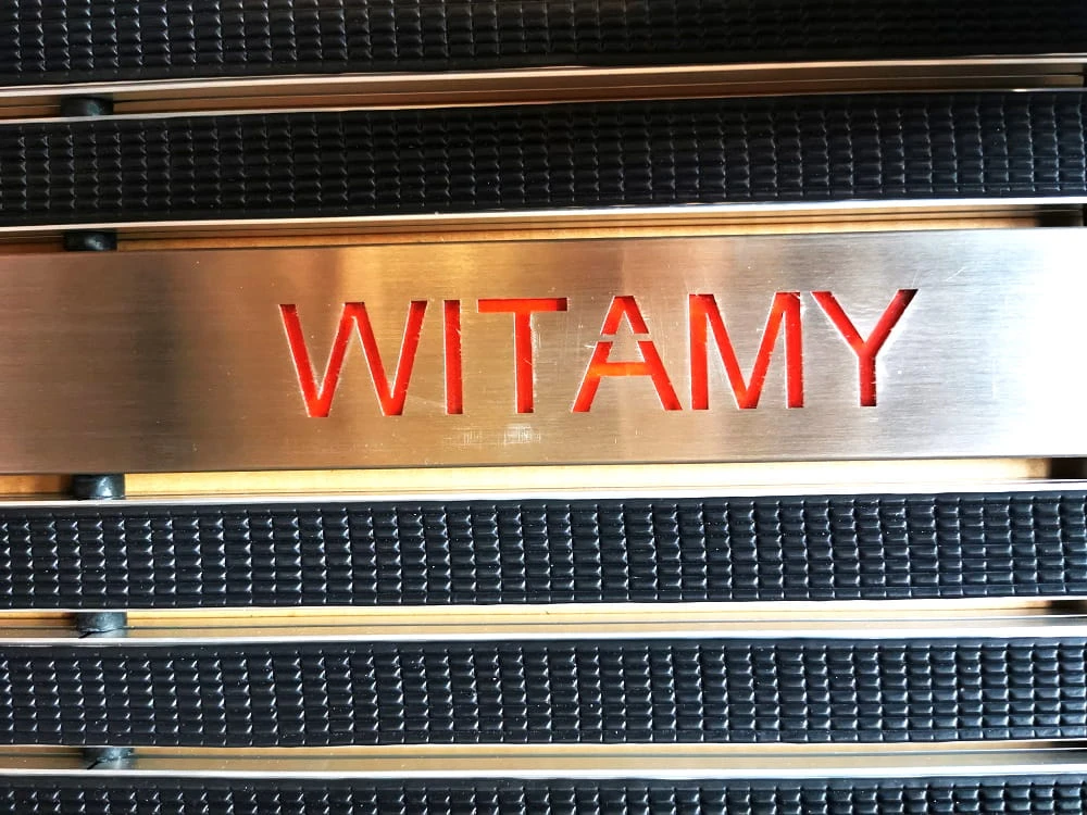 - Wycieraczka Gdańsk (czarne wkłady gumowe) + specjalny podświetlany profil z napisem WITAMY (świecący w kolorze czerwonym)