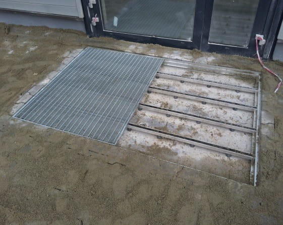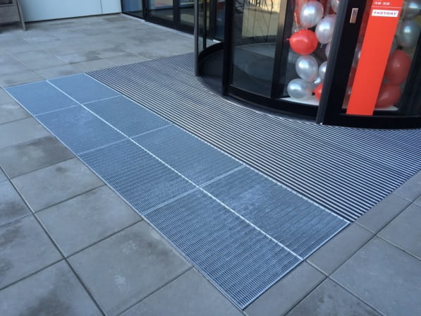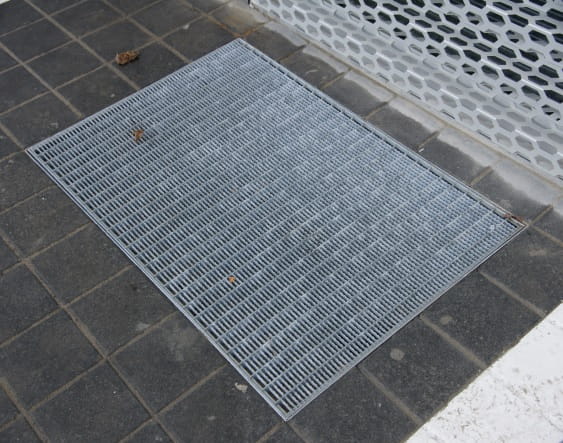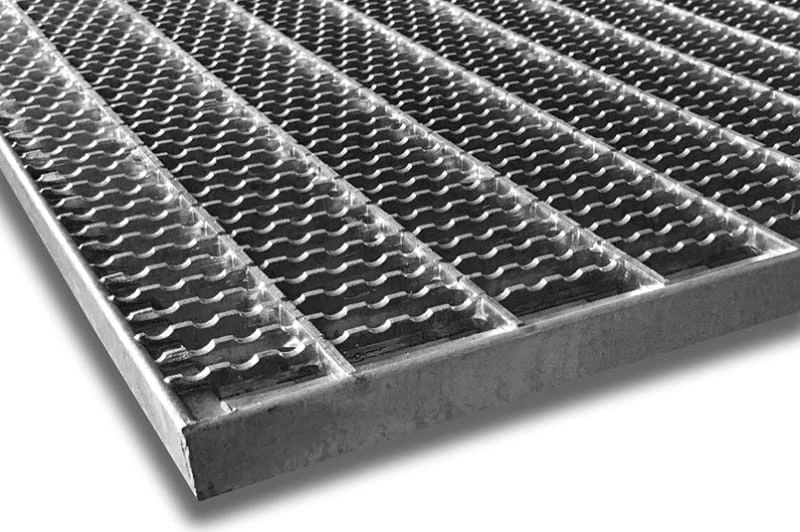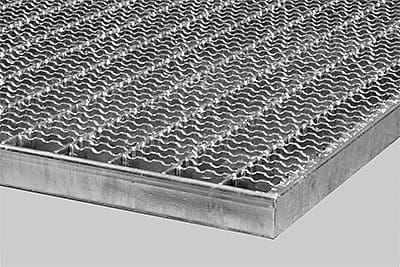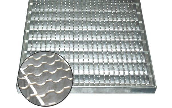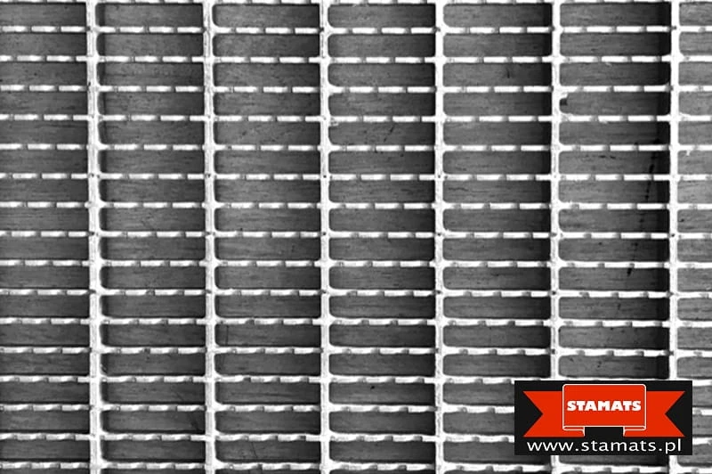 ocynkowana ogniowo, ze specjalnym antyposśizgowym ząbkowanym [seratowanym] płaskownikiem na górze wycieraczki.