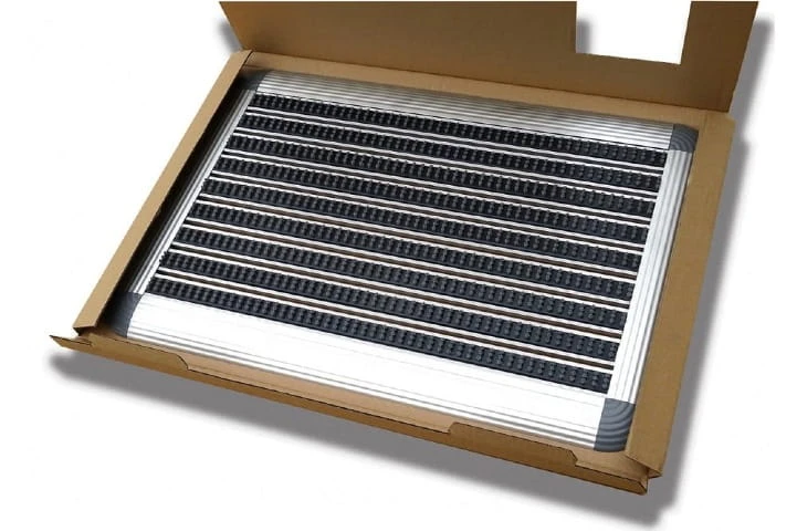 Wycieraczka aluminiowa o wymiarach 60x42 cm z wkładem ze szczotki i najazdem to wycieraczka do butów osuszająca, od razu gotowa do położenia pod drzwiami. Nie chcesz tracić czasu na montaż wycieraczki, tylko wolisz otrzymać produkt od razu zdatny do zastosowania w Twoim domu lub mieszkaniu? Kup wycieraczkę z naszej oferty! Wycieraczka jest gotowa do użycia już po wyjęciu z pudełka.