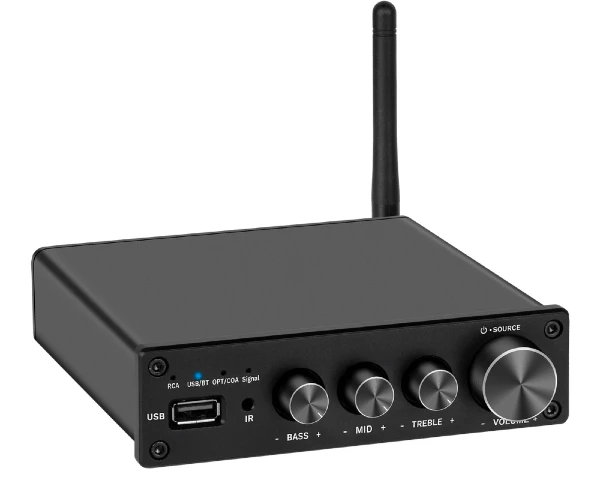 Kompaktowy wzmacniacz stereo z Bluetooth 5.1 i pilotem zdalnego sterowania