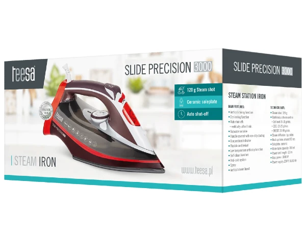 Wielofunkcyjne żelazko o dużej mocy Teesa Slide Precision 3000 - wydajne żelazko, które zatroszczy się o Twoje ubrania