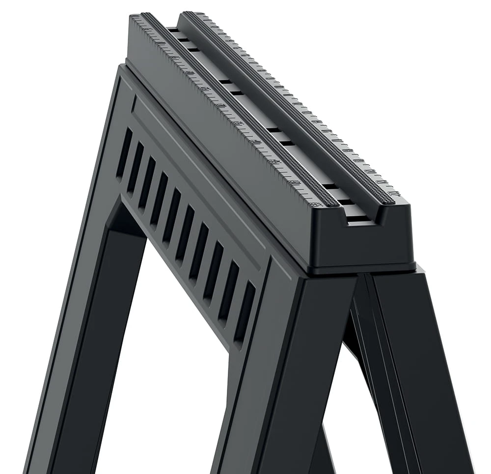Kobyłka warsztatowa składana inaczej kozioł warsztatowy jest doskonałym rozwiązaniem, kiedy nie ma umieszczenie stacjonarnego stołu roboczego. Antypoślizgowe pokrycie nóżek zabezpiecza stojak przed przemieszczaniem.