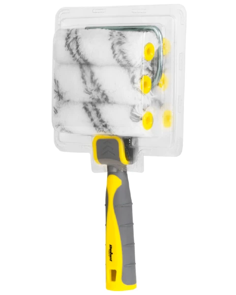 Zestaw zawiera także rękojeść, która pozwala na łatwe i wygodne trzymanie wałków podczas malowania. Rękojeść jest ergonomicznie zaprojektowana, co zapewnia komfort pracy.