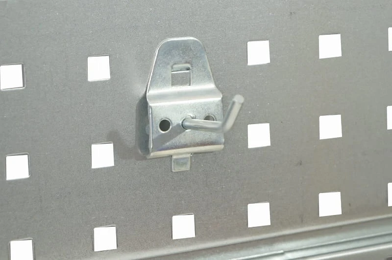 Zestaw pojedynczych małych haków do montażu na metalowych tablicach narzędziowych