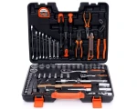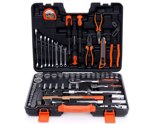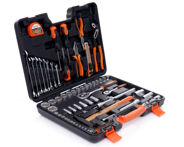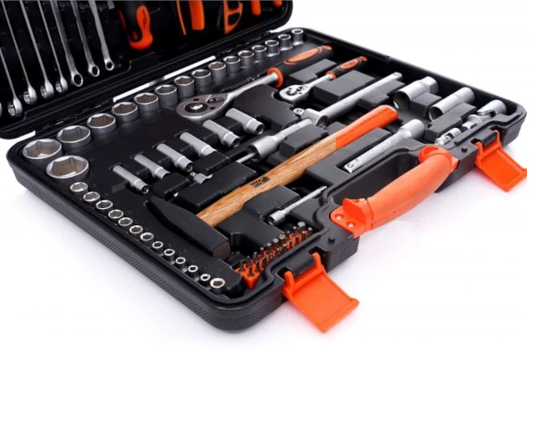 Cały zestaw składa się z 83 różnych elementów, które zapewnią odpowiedni dobór narzędzia do potrzeb. Narzędzia wykonane są z utwardzanej stali chromowo-wanadowej przeznaczonej dla narzędzi warsztatowych. Chrom gwarantuje odporność stali na korozję, utlenianie, ścieranie i dużą wytrzymałość na wysokie temperatury. Dodatek wanadu hamuje wzrost ziaren podczas obróbki, zwiększając jednocześnie ciągliwość zarówno postaci hartowanej, jak i odpuszczonej.