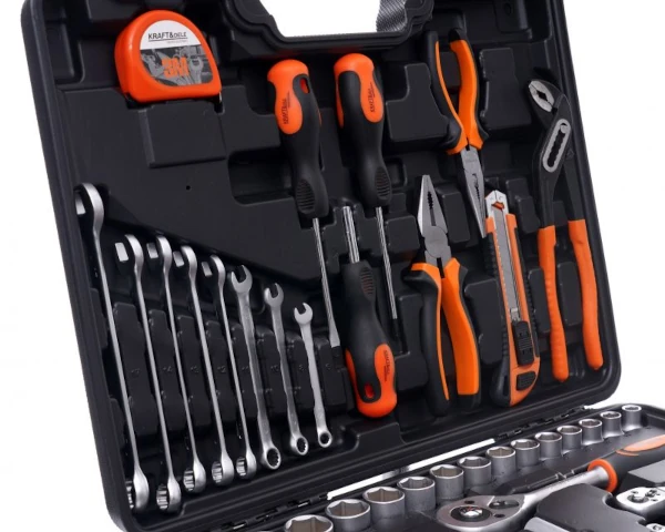 Niezwykle rozbudowany zestaw narzędzi polskiej marki Kraft&Dele. Narzędzia cechuje solidne wykonanie, wytrzymałe materiały oraz poręczna walizka, w której każde narzędzie ma swoje miejsce.