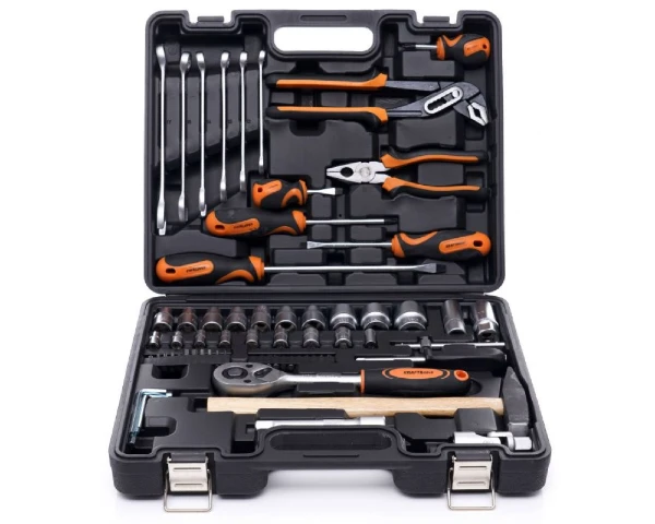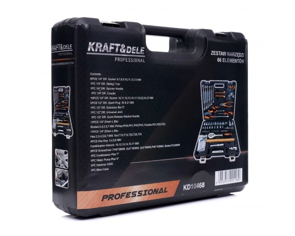 Zestaw narzędzi marki Kraft&Dele o symbolu KD10468 cechuje solidne wykonanie, wytrzymałe materiały oraz poręczna walizka, w której każde narzędzie ma swoje miejsce.