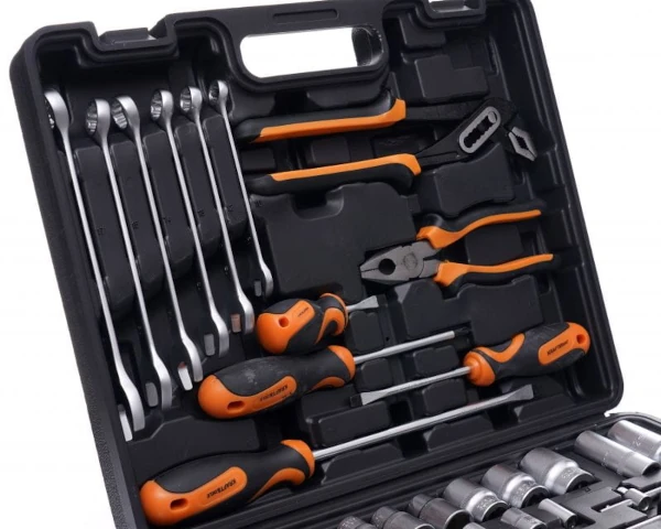 Niezwykle rozbudowany zestaw narzędzi marki Kraft&Dele o symbolu KD10468. Narzędzia cechuje solidne wykonanie, wytrzymałe materiały oraz poręczna walizka, w której każde narzędzie ma swoje miejsce.
