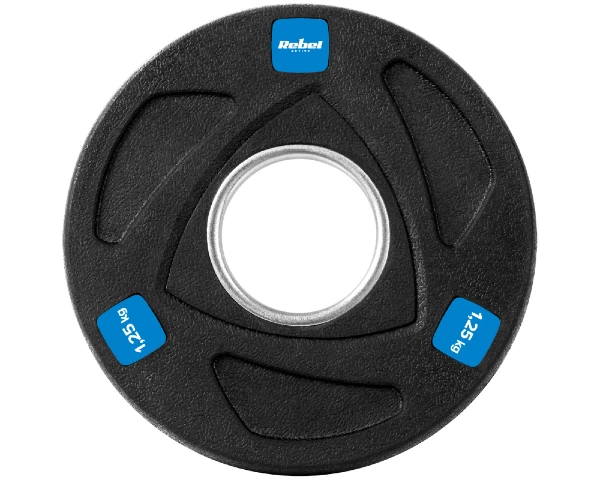 4 żeliwne gumowane talerze o wadze 1,25kg, otwór olimpijski 51mm, REBEL ACTIVE