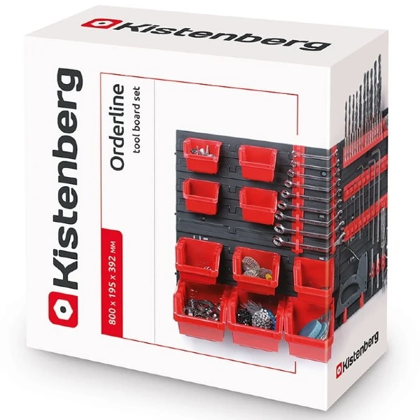 Zestaw tablica warsztatowa kuwety półki wieszaki na narzędzia Kistenberg Orderline