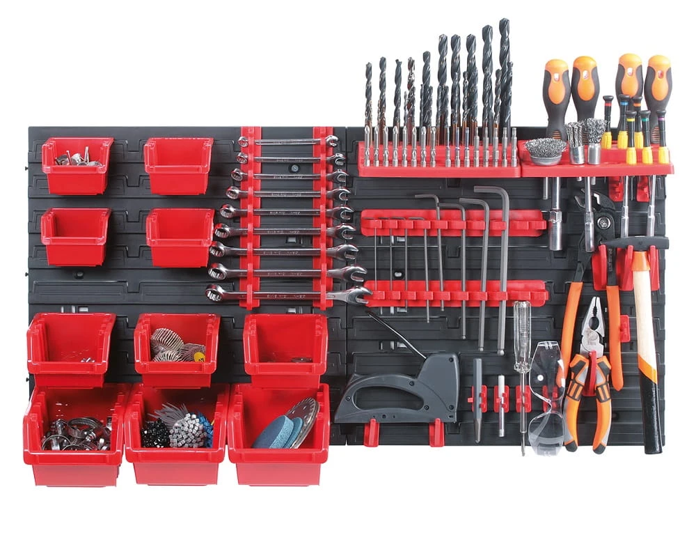 Dzięki temu zestawowi wszystkie niezbędne narzędzia i akcesoria będą zawsze pod ręką, a ich przechowywanie stanie się bardziej efektywne. Tablice wykonane są z odpornej mieszanki polimerów, które zapewniają trwałość i wytrzymałość na uszkodzenia mechaniczne oraz długotrwałe użytkowanie.