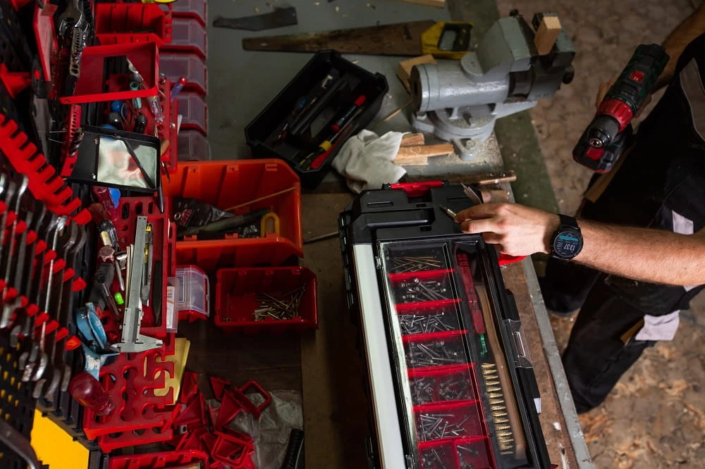 - Idealny do przechowywania drobnych elementów, narzędzi, bitów, miar itp.