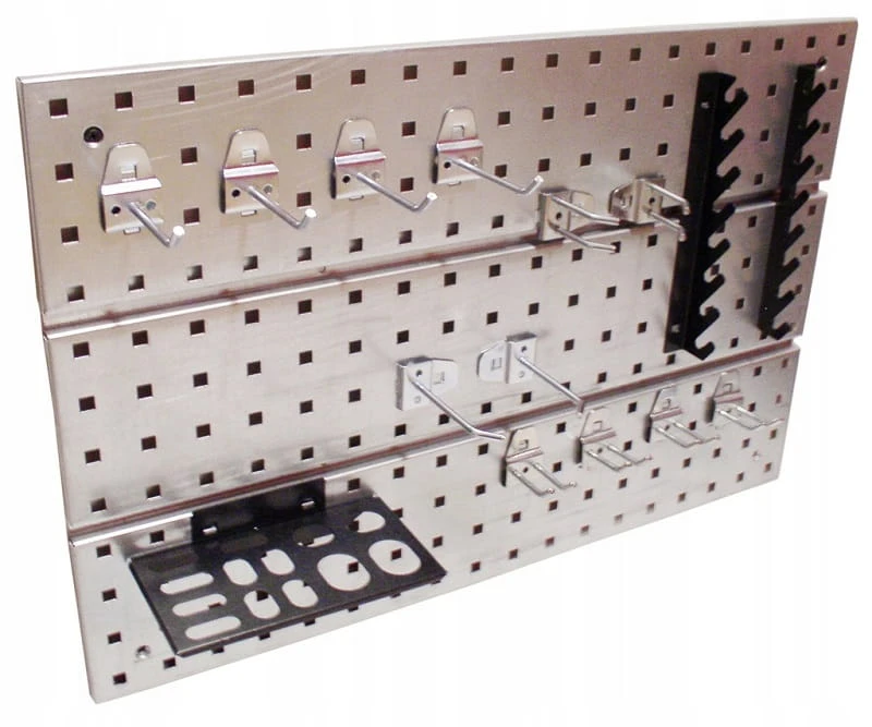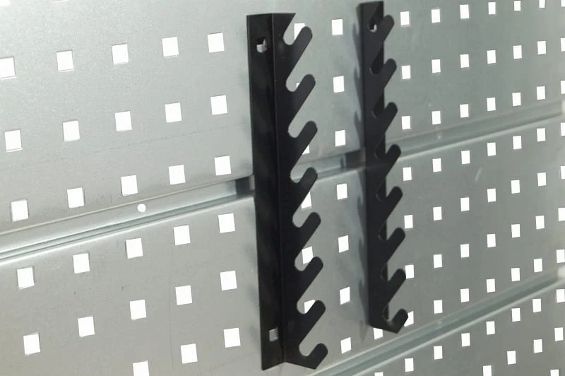 Zestaw wieszaków na klucze do montażu na tablicach narzędziowych.